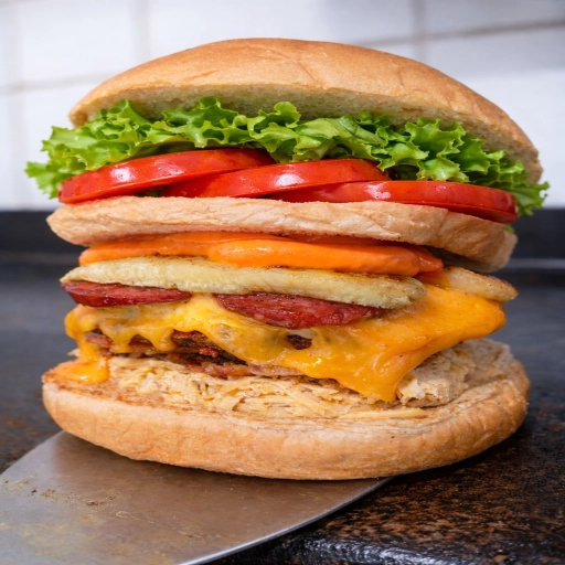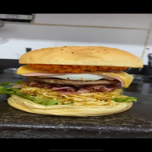 Pão, 2 Carne, 2 Frango, Cheddar, 2 Queijo, 2 Presunto, 2 Ovo e Salada