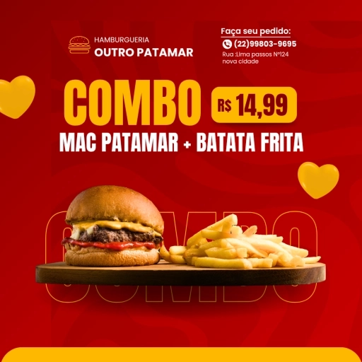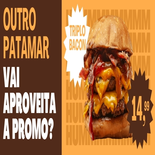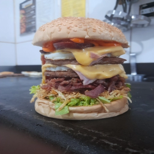 Pão de gergelim, 3 carnes suculentas, 3 queijo, bacon crocante , molho especial, Alface.