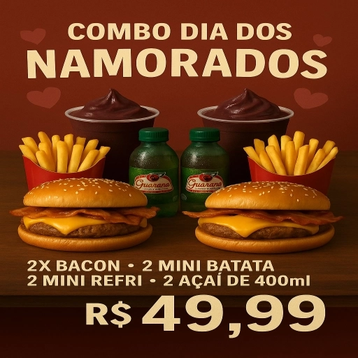 2 X bacon 2 mini batata 2 mini refrigerante, 2 açaí de 400ml